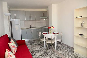 Ein »Apartment und ein »Dachstudio, Meerblick, gute Ausstattung, Terrasse, Schlafzimmer bzw. Schlafbereich, Wohnküche, Bad, WLAN-Internet.